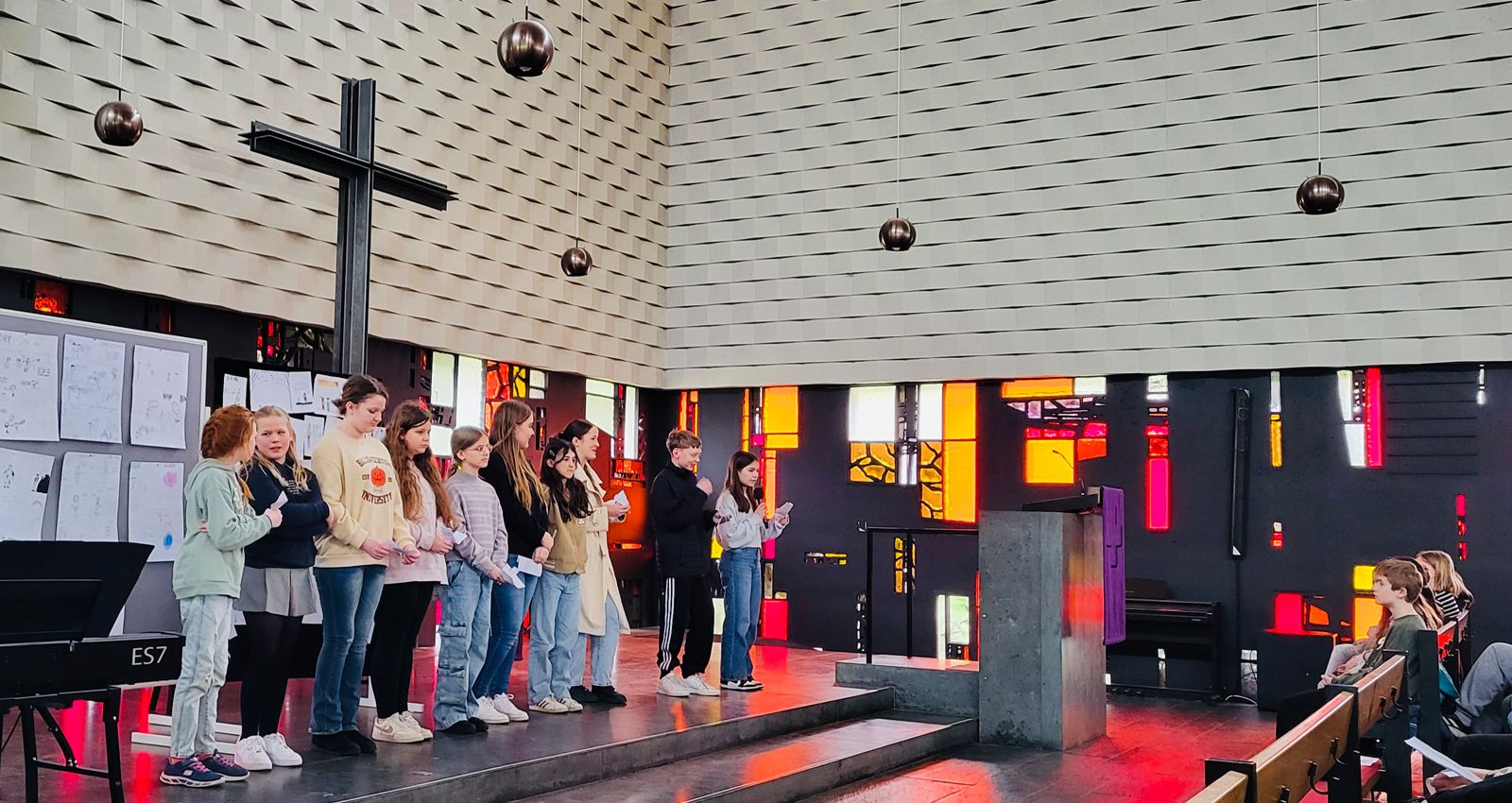 Am letzten Tag vor den Osterferien versammelte sich die Jahrgänge 5 und 6 der Gesamtschule Duisburg-Süd zu einem besonderen Anlass: dem Ostergottesdienst unter dem Motto „Von der Dunkelheit ins Licht“. In einer verbindenden Feierlichkeit wurden Themen wie Angst, Traurigkeit und Hoffnung aufgegriffen, begleitet von persönlichen Erzählungen und Liedern.